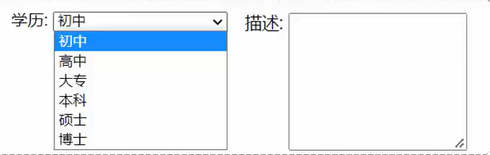 描述:<textarea name="description" cols="30" rows="10"></textarea> <br>
